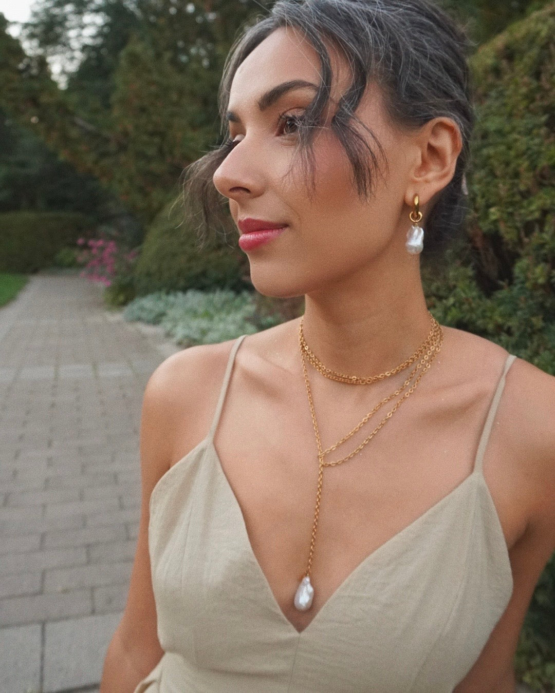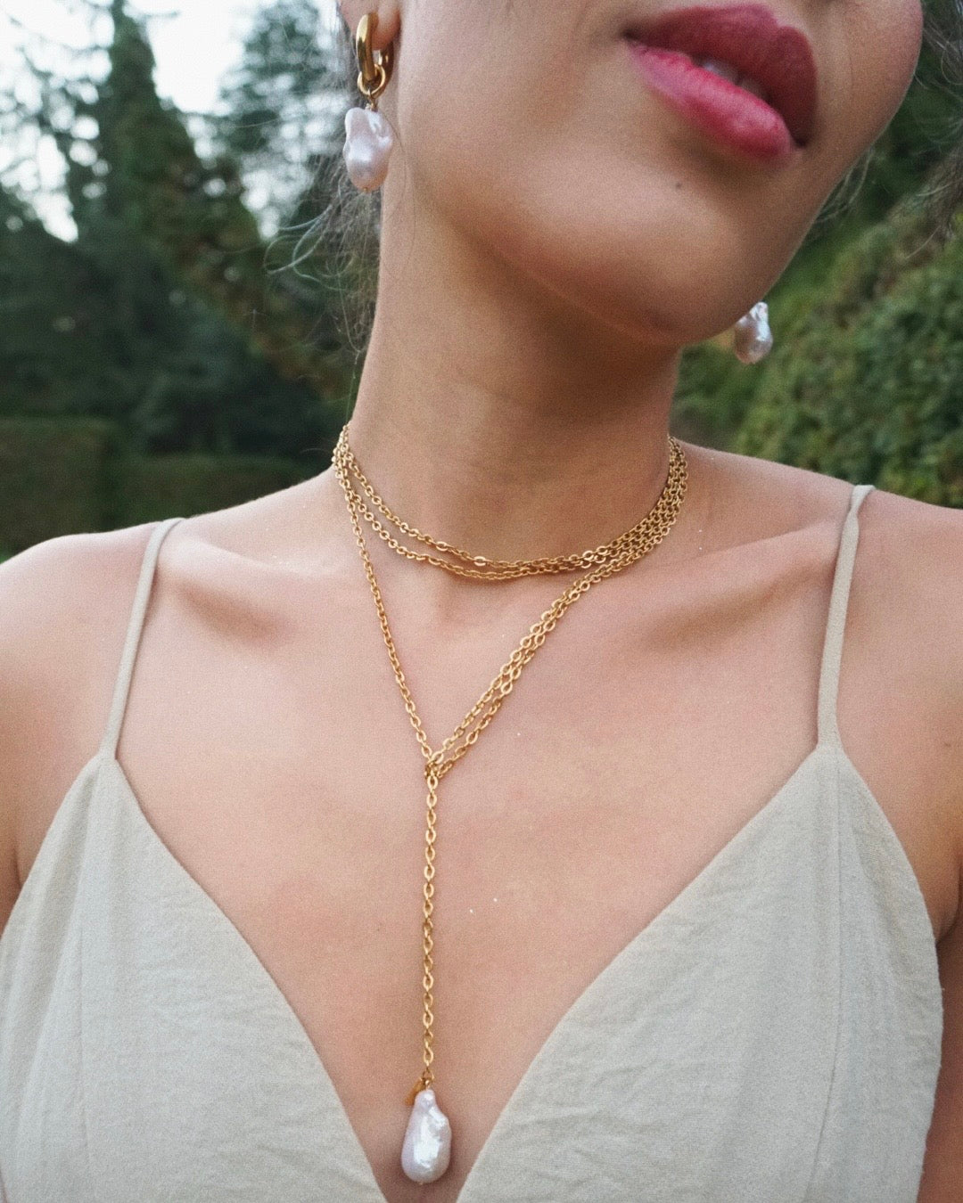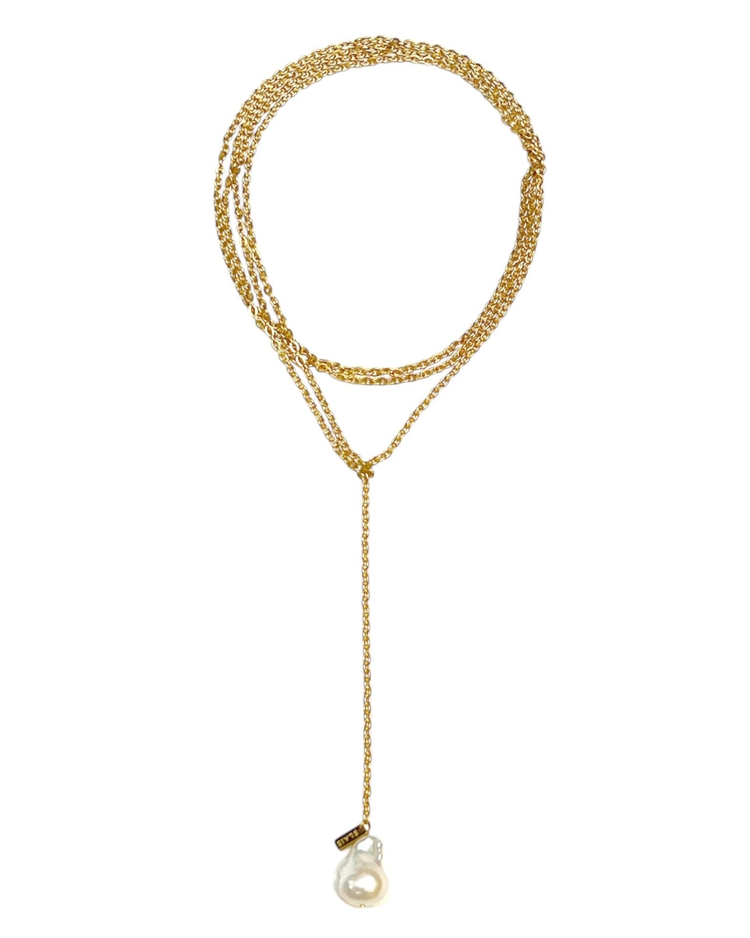 Meet The Versailles wrap—A natural baroque pearl gently suspended from a delicate gold-plated chain. The soft iridescence of the pearl combined with the golden glow of the chain creates a simple yet eye-catching piece—one that effortlessly transforms any look into something truly special.